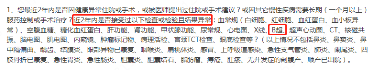 但它們往往會(huì)提及到“近2年內(nèi)是否接受過B超檢查且結(jié)果異?!?,如下圖:
