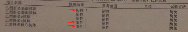第1項(xiàng)為陽性:乙肝病毒攜帶