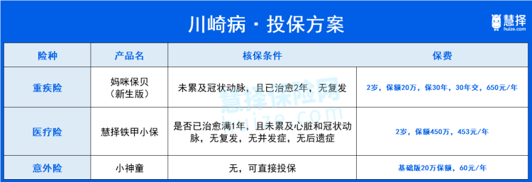 為了方便大家,星球君整理了關(guān)于川崎病的投保方案: