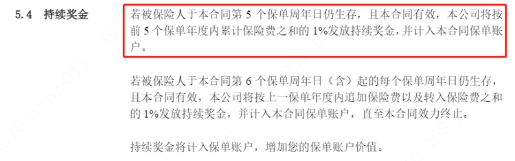 初始費(fèi)用交的錢(qián),一般會(huì)在存滿5年的時(shí)候,以獎(jiǎng)金的方式還給我們。像這樣↓