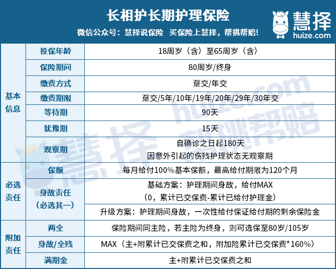 長(zhǎng)相護(hù)長(zhǎng)護(hù)險(xiǎn)保障方案有基礎(chǔ)版和升級(jí)版,即保證領(lǐng)取和不保證領(lǐng)取,大家可二選一,按需選擇。