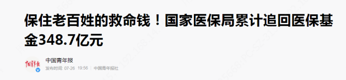 從2018年開始,國(guó)家醫(yī)保局通過檢查定點(diǎn)醫(yī)療機(jī)構(gòu),查出有問題的近70萬家,找回了348.7億元。