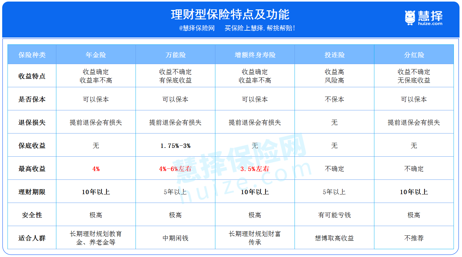 不同理財(cái)保險(xiǎn)特點(diǎn)不同,用途也不同:
