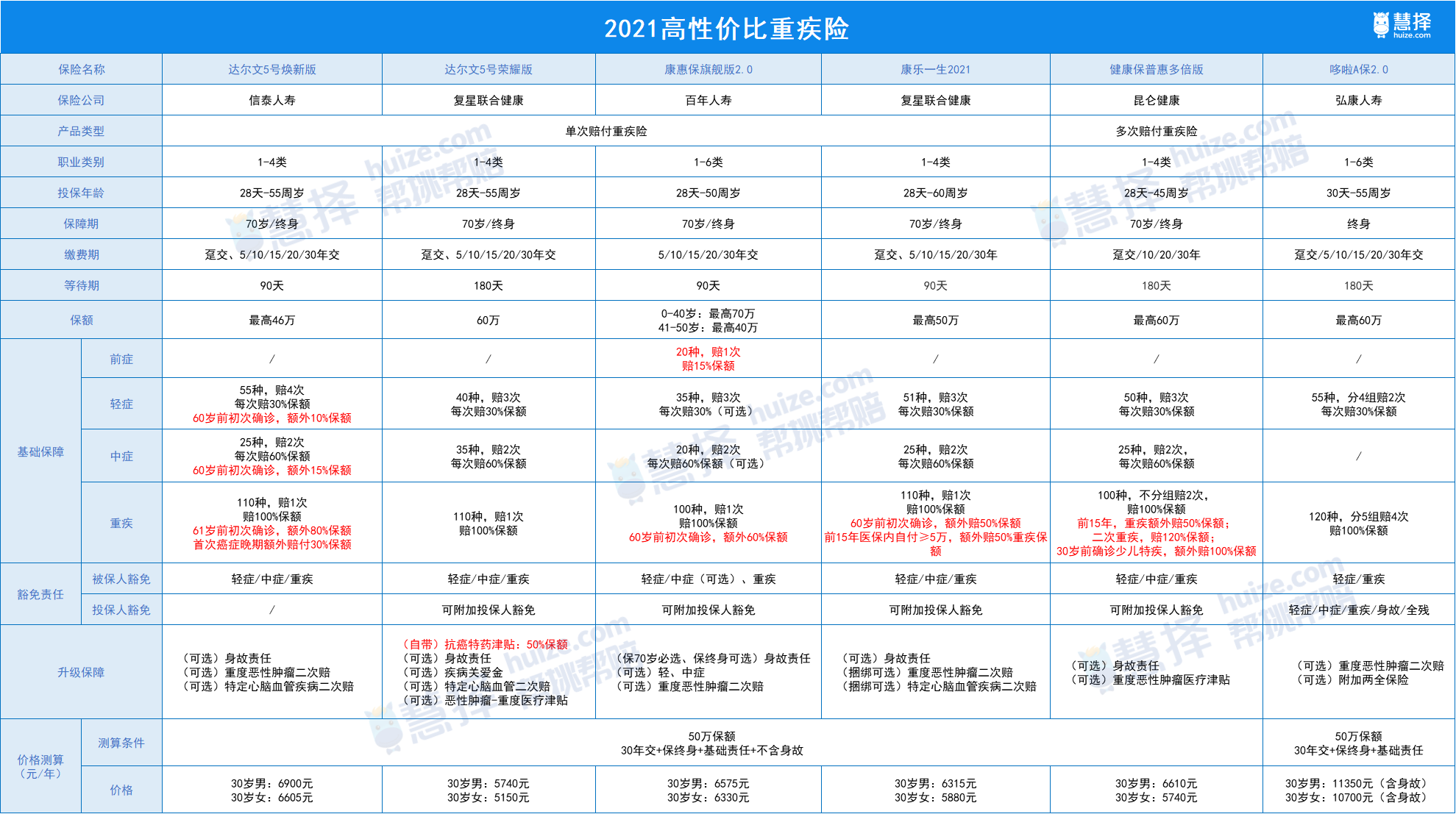 這里,我給大家整理了幾種優(yōu)質(zhì)重疾險,供大家參考: