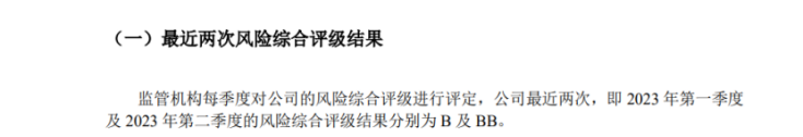 2023 年第一季度及2023 年第二季度的風(fēng)險綜合評級結(jié)果分別為 B 及 BB.