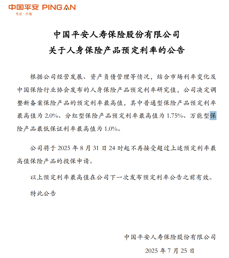 全行業(yè),預(yù)計在8月31日完成低預(yù)定利率產(chǎn)品的切換。