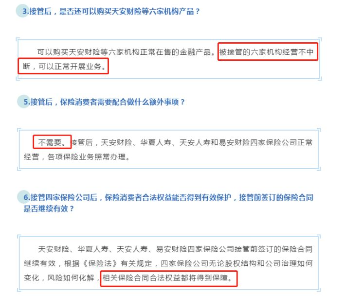 而去年銀保監(jiān)會(huì)接管的四家保險(xiǎn)公司呢,也第一時(shí)間回答了大家最關(guān)心的問(wèn)題: