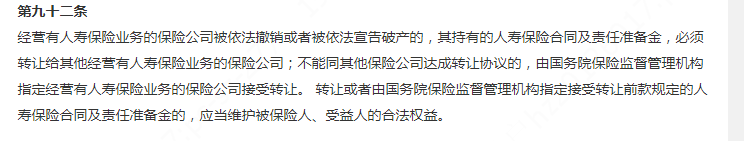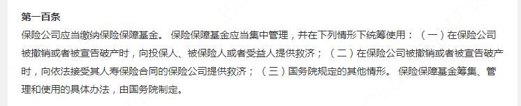 這一條是針對(duì)極端情形擬定的,隨著保險(xiǎn)市場(chǎng)和監(jiān)管體系越來(lái)越成熟,未來(lái)保險(xiǎn)公司破產(chǎn)的概率,只會(huì)更低。