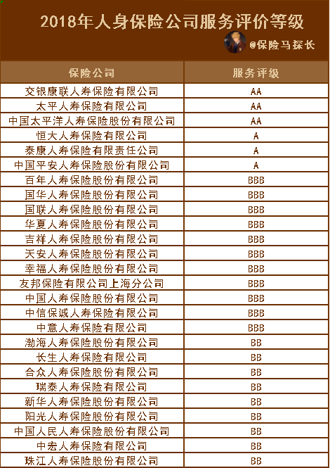 中國(guó)銀行保險(xiǎn)信息技術(shù)管理有限公司就公布了一份2018年保險(xiǎn)公司的服務(wù)評(píng)級(jí)表。