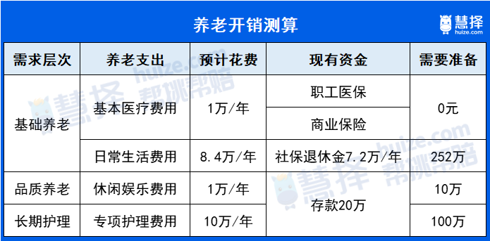 滿足我們退休后生活的基本需求,包括日常的衣食住行的費(fèi)用;還有年紀(jì)大了之后,小病小痛需要買藥的費(fèi)用。