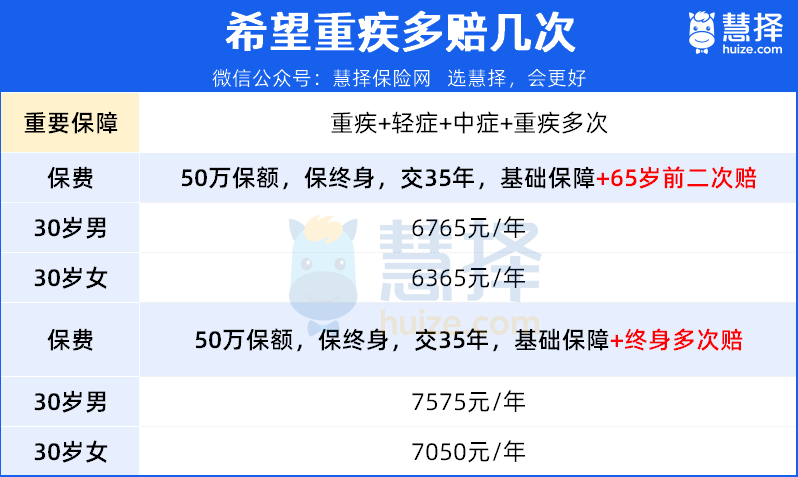 附加之后終身重疾都能多賠2次,比如買50萬保額,每次都能多賠60萬。